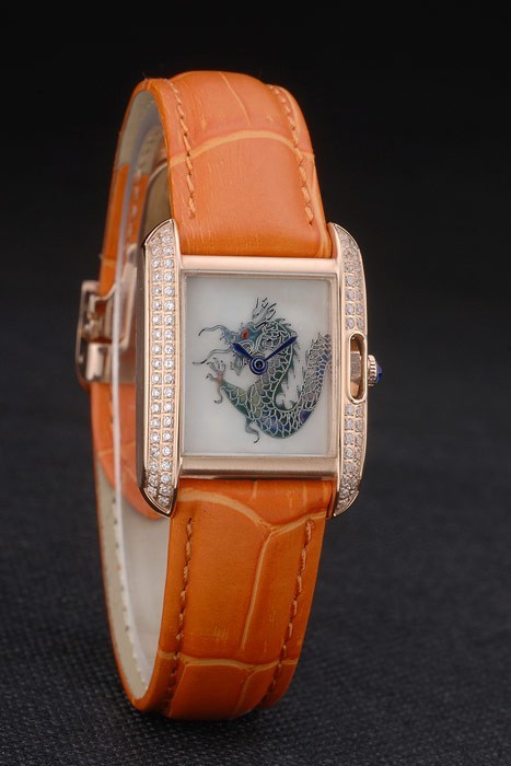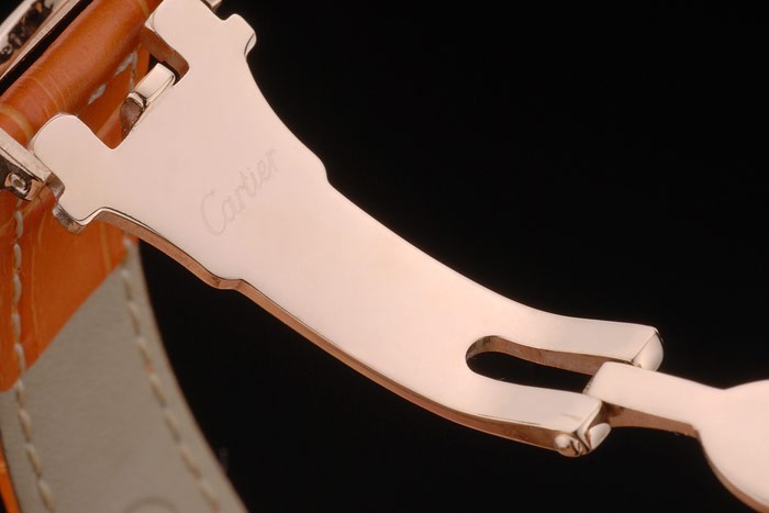 Armband plattiert: Cartier Hitze geprägt Orange Krokolederarmband mit 18 Karat Roségold plattiert Einfalt-Verschluss-Schnalle
