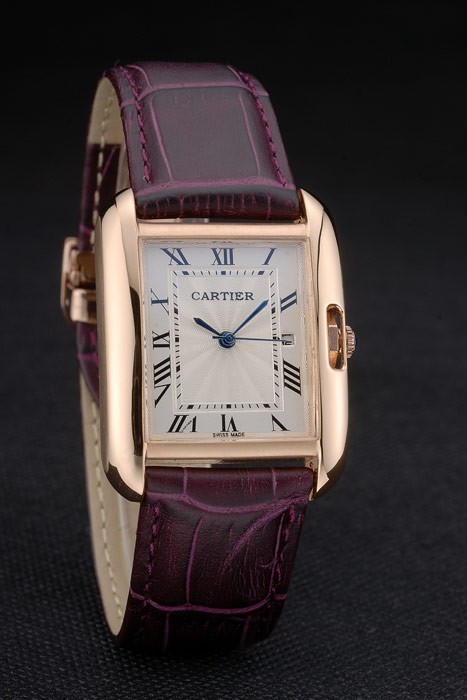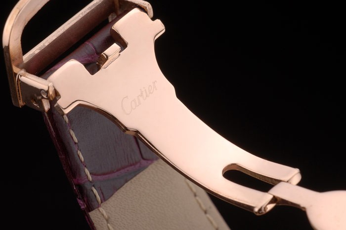Armband plattiert: Cartier Hitze geprägt lila Krokolederarmband mit 18 Karat Roségold plattiert Einfalt-Verschluss-Schnalle