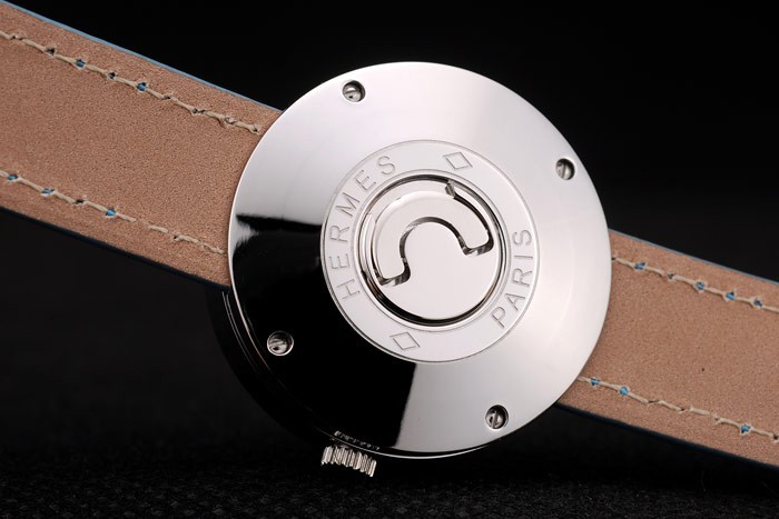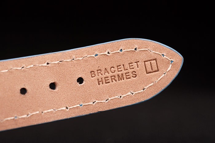 Armband: Hellblau Lederband mit Wärme Einprägung Armband Hermes und Hermes poliert Haken-Schnalle Edelstahl eingraviert
