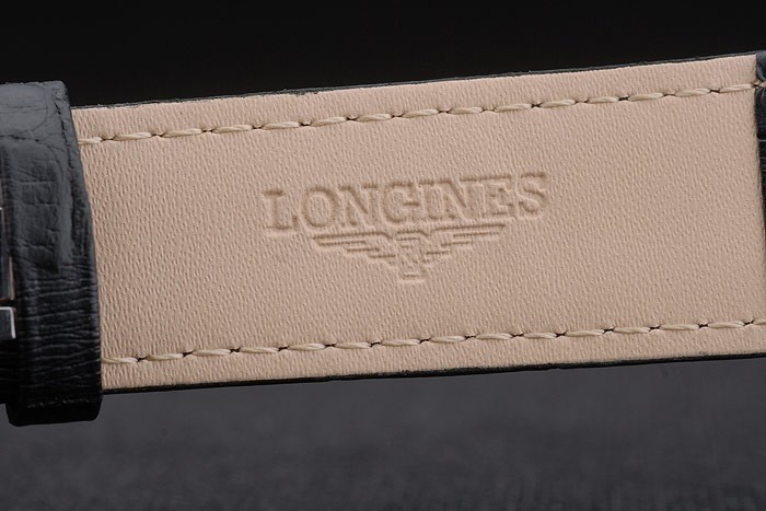 Armband: Longines Wärme geprägt schwarzem Krokolederarmband mit Longines Logo beschriftet und poliertem Edelstahl Haken clasp