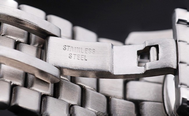 Rückseite: Edelstahl-Steckgehäuseboden mit Omega inscriptions