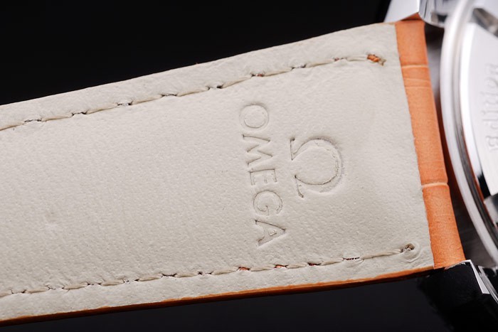 Armband: Hitze Omega Name und das Logo Orange Krokodillederband mit Omega-Logo eingraviert poliertem Edelstahl Falte geprägt -in Flip clasp