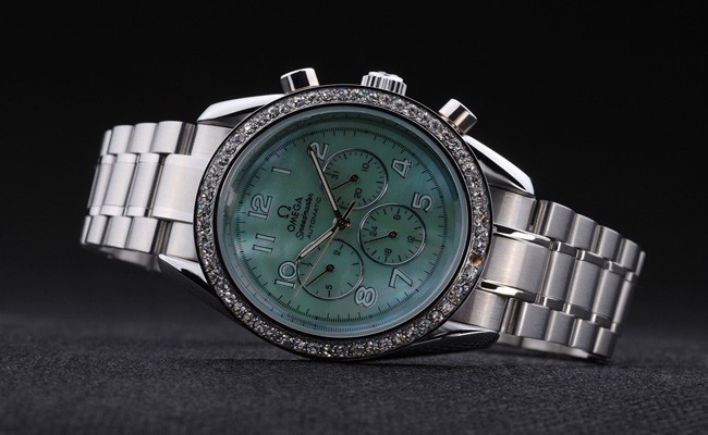 Rückseite: Edelstahl-Steckgehäuseboden mit Omega Inschriften