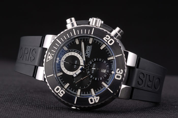 Armband: Oris Hitze geprägten schwarzen Kautschukarmband mit Oris gravierte rostfreiem Stahl gebürstet Einsatz clasp