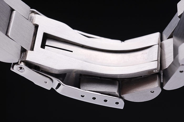 Armband: geschliffener und polierter Edelstahl-Gliederarmband mit Faltschließe Oris beschriftet clasp