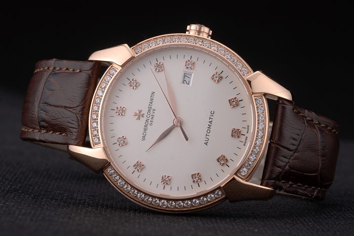 Armband: Hitze geprägt Vacheron Constantin Logo und braunen Krokodillederband mit 18k Rose- vergoldet logo Haken-Schnalle clasp