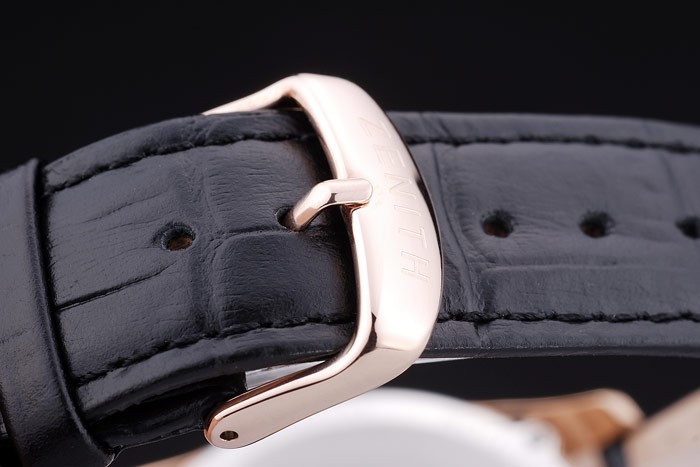 Armband: Hitze geprägten Riemen Zenith schwarz Krokodilleder mit rose vergoldet Haken-Schnalle clasp